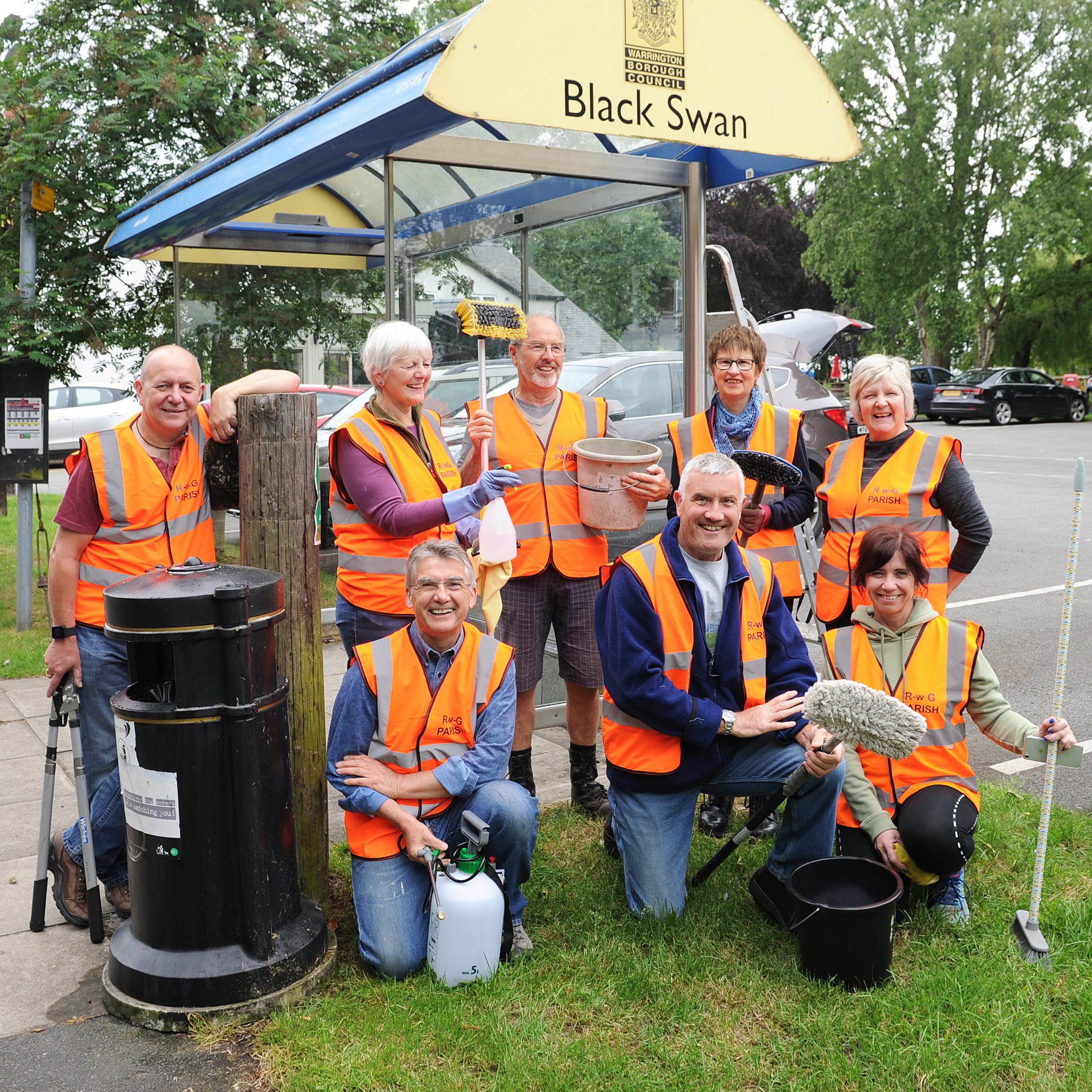 Rixton-with-Glazebrook Community Plan Group volunteers armed themselves with hi-viz vests, brushes, mops, and hedge strimmers to tackle the overgrown and dirty road ... more